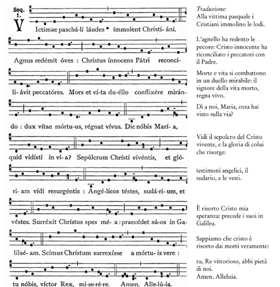 Durante il medioevo in molte chiese d'Occidente si usava cantare, prima del Te Deum mattinale, la sequenza Victimae Paschali, che Noi recitammo dopo l'Epistola. La si eseguiva in forma dialogica con canto melodioso, che ad ogni strofa ripeteva: «Quod autem vivit, vivit Deo: alleluia, alleluia».